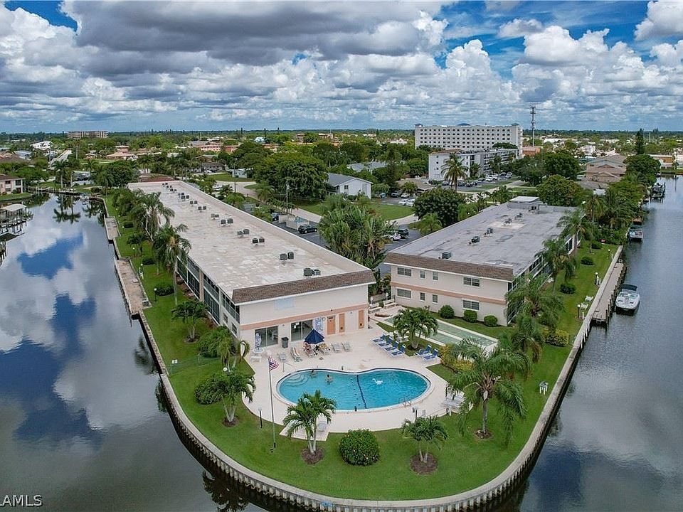 DESIRABLE FIRST FLOOR HIDDEN GEM WITH GULF ACCESS. THIS FULLY FURNISHED AND TURNKEY UNIT OFFERS PEACEFUL CANAL VIEWS AND A COASTAL VIBE WITH NEW FURININSHING AND DECOR. WOOD GRAIN CERAMIC TILE THROUGHOUT THE MAIN LIVING AREA, KITCHEN AND HALLWAY AND WOOD LAMINATE IN THE THE BEDROOMS. NEW CUSTOM KITCHEN CABINETS WITH UPGRADED FEATURES INCLUDE DEEP DRAWERS, SPICE DRAWER, BUILT IN GARBAGE/RECYLING AND MORE. BEAUTIFUL CAMBRIA QUARTZ COUNTERTOPS, NEW REFRDIGERATOR, WINDOWS AND HOT WATER HEATER. MASTER BEDROOM OFFERS A PRIVATE BATH AND WALK-IN CLOSET WITH CUSTOM CLOSET ORGANIZERS. LOVELY PLANTATION SHUTTER DOORS OVER THE SLIDERS WHICH LEAD TO THE FESTIVE LANAI WITH ACCESS TO THE CONCRETE BOAT DOCK. CROWN MOLDING, AND CIELING FANS THROUGHOUT. STACKABLE FRONT LOADER WASHER/DRYER. ASSIGNED PARKING SPOT NEARBY AND INVITING POOL AREA COMPLETE WITH SHUFFLEBOARD, COMMON LAUNDRY ROOM AND COMMUNITY ROOM. EXPANSIVE VIEWS OF THE INTERSECTING CANALS. GREAT COMMUNITY FOR BOATING. JUST ONE BRIDGE TO OPEN WATER. BOAT, WALK OR RIDE YOUR BIKES TO THE POPULAR BOAT HOUSE RESTAURANT AND COMMUNITY YACHT CLUB. GREAT LOCATION TO VISIT THE QUAINT SHOPS, BARS AND RESTAURANTS IN DOWNTOWN CAPE CORAL. CLEAN COMPLEX WITH LOW HOA'S. YOU WON'T WANT TO MISS THIS OPPRTUNITY.