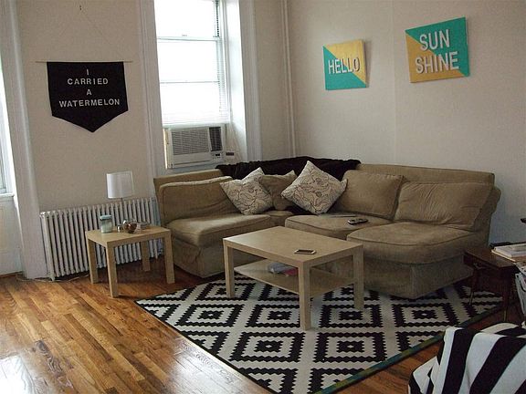 Spacious bright 2 bedroom 1 bath unit with eat in kitchen, high ceilings, wood floors. Rent includes heat & hot water. Free washer/dryer in basement. Steps to NYC bus, shopping. Owner is a licensed realtor. (pictures from prior tenant)