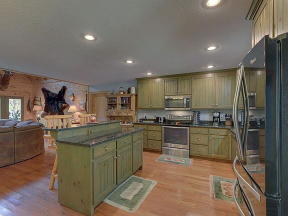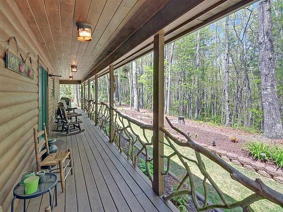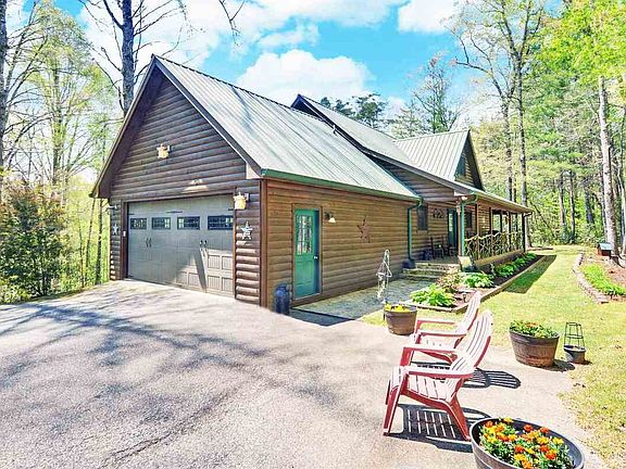 If you're looking for a mountain lodge only minutes from Lake Burton with views overlooking a neighbor's pond, look no further! This 5 bedroom, 4 bathroom home has been meticulously maintained inside and out. Step inside from the front porch to an open concept living area. The kitchen has solid surface countertops and a large island that faces the 2-story vaulted great room complete with large stone fireplace as the focal point of the living space. The primary bedroom is on the main level. The bathroom is spacious with double vanity sinks, a separate jetted soaking tub, shower and walk-in closet. A second bedroom and bathroom are also located on the main level. A mudroom/laundry room sits between the garage and kitchen providing practical convenience. Upstairs, you'll find two additional bedrooms and a small living area with another bathroom. Downstairs is a complete secondary living space with full kitchen, another living room, a bedroom, bathroom and utility room. Outside, porches span across both sides of the house providing great outdoor living space complete with covered porch and hot tub. Enjoy relaxing under the stars at the outdoor fire-pit. Located only 5 minutes from Moccasin Cove boat ramp on Lake Burton and only 15-20 minutes from the amenities of downtown Clayton. This home would make a great vacation home, family residence or or a short term Airbnb rental.
