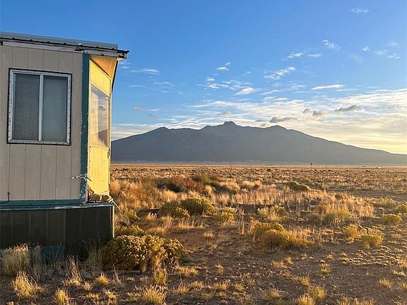 This charming 2-bedroom, 1-bathroom single-wide home sitting on 5 acres offers the perfect blend of tranquility and natural beauty. Wake up to awe-inspiring views of Mount Blanca, one of Colorado's most iconic peaks. Enjoy ever-changing vistas and stunning sunrises and sunsets from your own backyard. This expansive property provides ample room for your vision. Explore, set up a picnic area, or even stargaze in this peaceful countryside setting. Experience the peace and quiet of rural living while remaining conveniently close to amenities, making it an ideal escape from the hustle and bustle of city life.