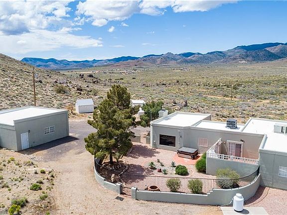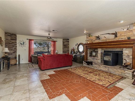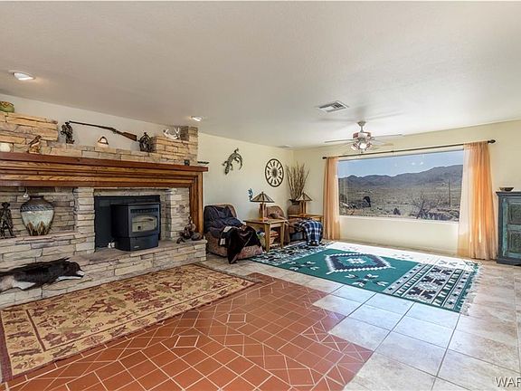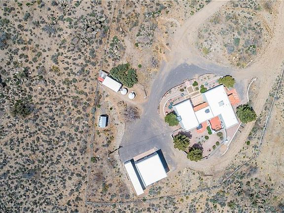 32.54 acres on a private dead end road that is fully fenced and gated and features a custom built 3 bedroom Santa Fe style home! This home offers 2,034 sq ft of living space, Detached 2 car 30x30 finished garage and is on a private well! Other important features and upgrades include: *Backs up to BLM land *Circular drive way *Desert landscaping *Newer exterior paint *Owned security system *Amazing views from front patio *Formal living and family rooms *Pellet stove with wood mantle and stone work *Oak kitchen cabinets *Lows flow appliances *Tile counter tops *Kitchen island *Gas stove *Trash compactor *Garbage disposal *Built in oven and microwave *Formal dining with patio access *Newer carpet in guest bedrooms *Large bay windows *Indoor laundry with patio access, lots of cabinets and storage, folding table *Large master suite with walk in tile shower, updated tile floors, Patio access, double closets *Rear patio with fireplace and privacy walls *Block wall fencing *Hot tub stays *Approx 3.4 acres separately fenced with rolling gate around home *100 gallon owned propane tank *Owned 40'x8' storage container *3 water collection tanks off garage roof *Well house with two 2,500 gallon tanks and 50 gallon pressure tank *12'x8' Green house