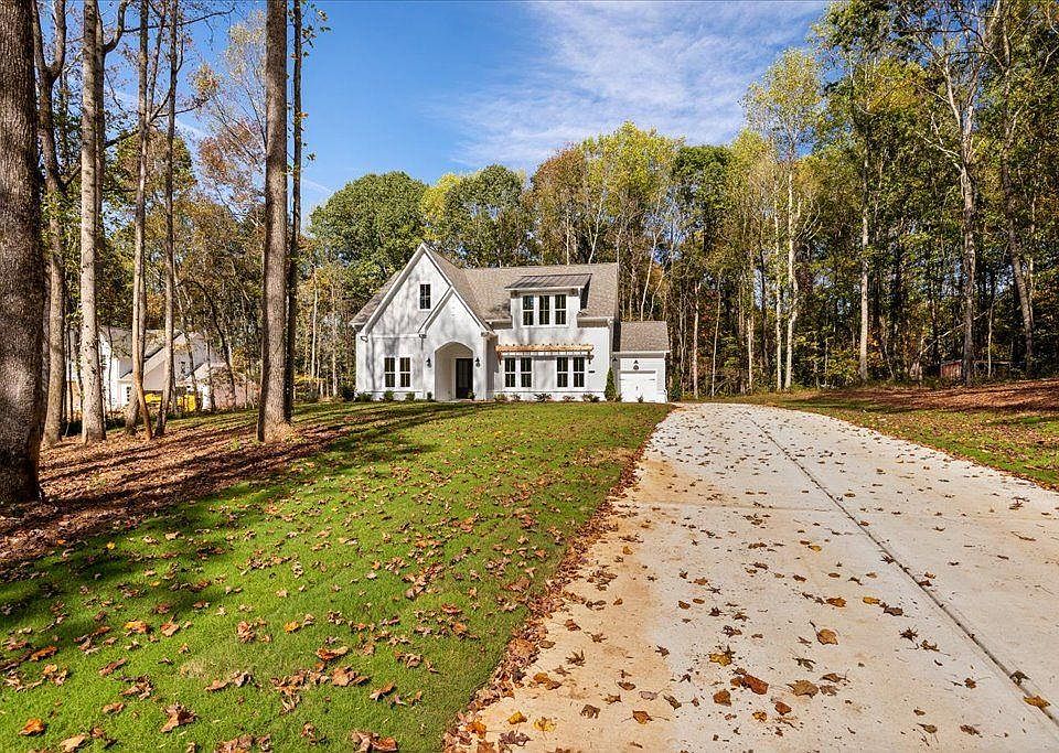 Nestled on a quiet, paved road with only four homes—each situated on a spacious three-acre lot—this stunning new construction offers privacy, tranquility, and refined country living with no HOA. Located on Lot 3, The Scarlett at Scarlett Grace home is nearly complete and ready for a quick closing. The thoughtfully designed 4-bedroom, 3.5-bath floor plan features an open-concept layout with 10-foot ceilings and 8-foot interior doors on the main level, and 9-foot ceilings upstairs. The primary suite is conveniently located on the main floor and includes easy access to the laundry room from both the owner’s suite and hallway. The home’s inviting great room boasts a vaulted ceiling, creating a bright and airy space perfect for entertaining or relaxing. The gourmet kitchen showcases stacked cabinets, quartz countertops, a farmhouse apron-front sink, double ovens, a five-burner gas cooktop, and a large island ideal for gathering. Throughout the home, you’ll find soft-close cabinets and drawers, adding a touch of quality craftsmanship. Additional features include a dedicated office on the main level, a mudroom with built-in bench, and an owner’s bathroom with a freestanding soaking tub and separate shower. Every bedroom has direct access to a bathroom, providing convenience and comfort for family or guests. The home also includes a three-car garage—with two side-entry bays and one front-facing—and an irrigation system to keep the expansive property lush and green. A covered back porch with ceiling fan offers the perfect spot to enjoy the serene surroundings. Photos shown are of a similar home with the same floor plan by the same trusted builder, showcasing the craftsmanship and attention to detail you can expect in this gorgeous new residence.