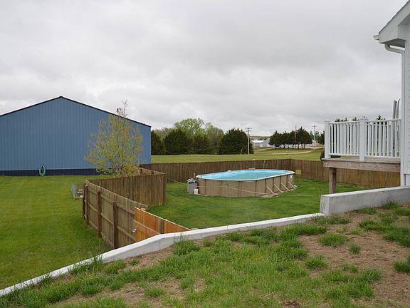 Location: Just North of the Calamus Golf Course, 6 miles NW of Burwell, NE 11' x 14' Foyer, laminate floor, coat closet, vaulted ceiling, staircase to second level, access to basement 11' x 12 1/2' Office, laminate floor, double doors, lighted ceiling fan 5 1/2' x 10' 3/4 Bath w/ shower, ceramic tile floor 13' x 22' Kitchen, laminate floor, recessed lighting, pantry, island breakfast bar with stools, double stainless sink, disposal, GE dishwasher, Whirlpool refrigerator, GE electric range, GE microwave, patio door to 8'x8' wood deck 15' x 17' Living room, laminate floor, vaulted ceiling, lighted ceiling fan, wood fireplace 7 1/2' x 10' Laundry room, laminate floor, closet, mop sink, LG washer, Maytag dryer, garage access 13' x 14' Master bedroom, carpet, lighted ceiling fan, 9' ceiling, patio door to 8'x13' wood deck 6' x 10 1/2' Master closet, laminate floor 9' x 14' Full Master bath, ceramic tile floor, jetted tub, shower, double sink, closet Upstairs: 11' x 11' Landing, carpet, recessed lighting, linen closet 10' x 14' Bedroom, carpet, closet, lighted ceiling fan 10' x 13' Bedroom, carpet, closet, lighted ceiling fan 9' x 24' Flex room, carpet, recessed lighting 8' x 14' Storage room, attic access 5' x 8' Full bath, ceramic tile floor Basement: 40' x 45' Unfinished walk-out basement, Rinnai propane water heater, Pex manifold system, water filter, 2006 Lennox propane furnace w/ 2008 heat pump & exterior central air unit, 200 amp breaker box, pressure tank, washer & dryer hook-ups, roughed in bathroom plumbing, sliding patio door, 9' basement ceiling Garage: 21 1/2' x 22' Attached double garage, insulated, 8'x16' automatic overhead door Building: 2008 Pole building, 60' x 99' sand floor, 16' side walls, 2- walk-thru doors, 10' x 12' overhead south door, 14' x 20' automatic overhead east door, access off Whitetail Lane Fenced-in backyard with above ground swimming pool, propane tank not included Additional adjoining lot to the south may be purchased.