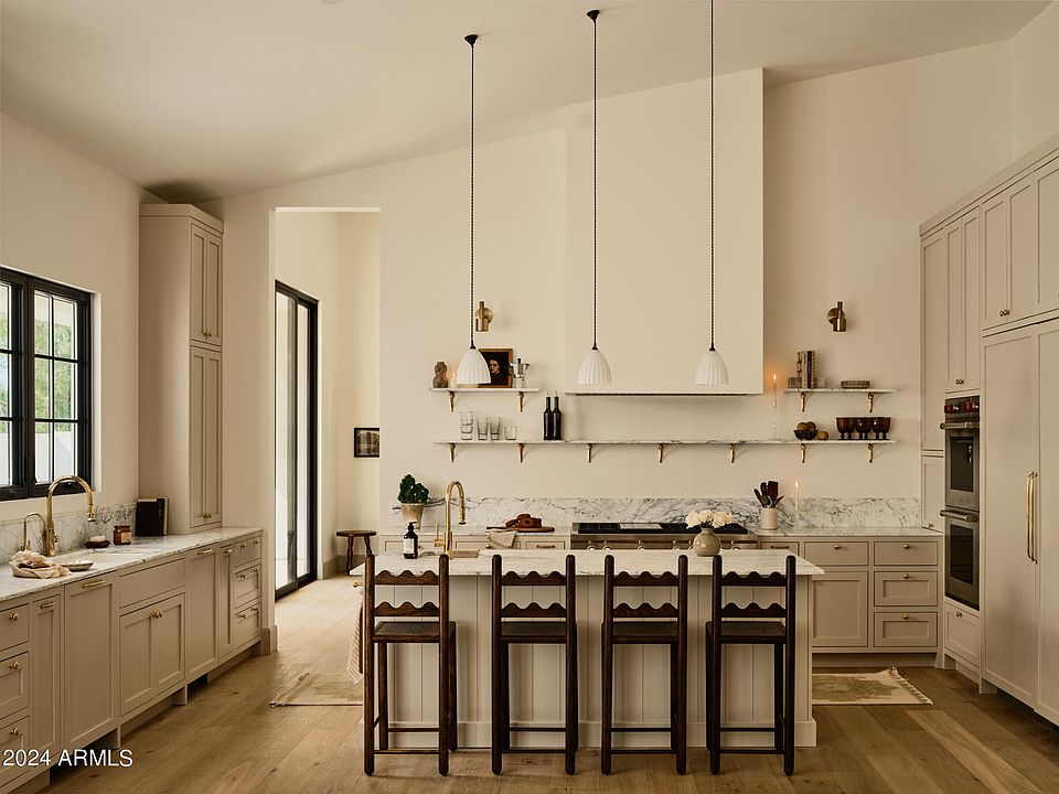 Phoenix Home and Garden 2023 ''Remodeler of The Year'' MDF Development, Jewel Box Homes and interior designer Lauren Wallace are bringing to market this beautifully remodeled home in guard gated Scottsdale Country Club. This house has a split floorplan with tall ceilings and a great golf course view. It's complete with Sub Zero appliances, custom cabinets, European white oak floors, marble countertops and designer light fixtures. All bedrooms are ensuite, and the primary boasts an incredible showroom closet and private patio. In addition to your private pool and spa, there are community tennis courts and the HOA maintains front yard landscaping. Experience true Arizona living at 8281 E Kalil Dr.