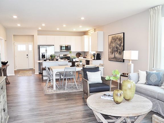 Your search is going to STOP after seeing the Napa model that seamlessly melds the living/dining/kitchen space with a beautiful open-concept model. Upon walking in, you'll immediately feel at home in the large welcoming foyer. Off to the side is a great den/office area. The kitchen features tons of cabinets, a range, a dishwasher & microwave. The dining space fits right in between the kitchen and the large living space. Off to the side of the dining space is the 2nd bedroom & bathroom, plus the large owner's suite that includes a great bathroom and walk-in closet. It also includes a great sunroom right off the living room! Home includes a smart video doorbell, smart lock & smart thermostat! All are located in the new Kingston Ridge community that includes a spectacular community pool, walking paths, and playground. Photos representative of previous home.