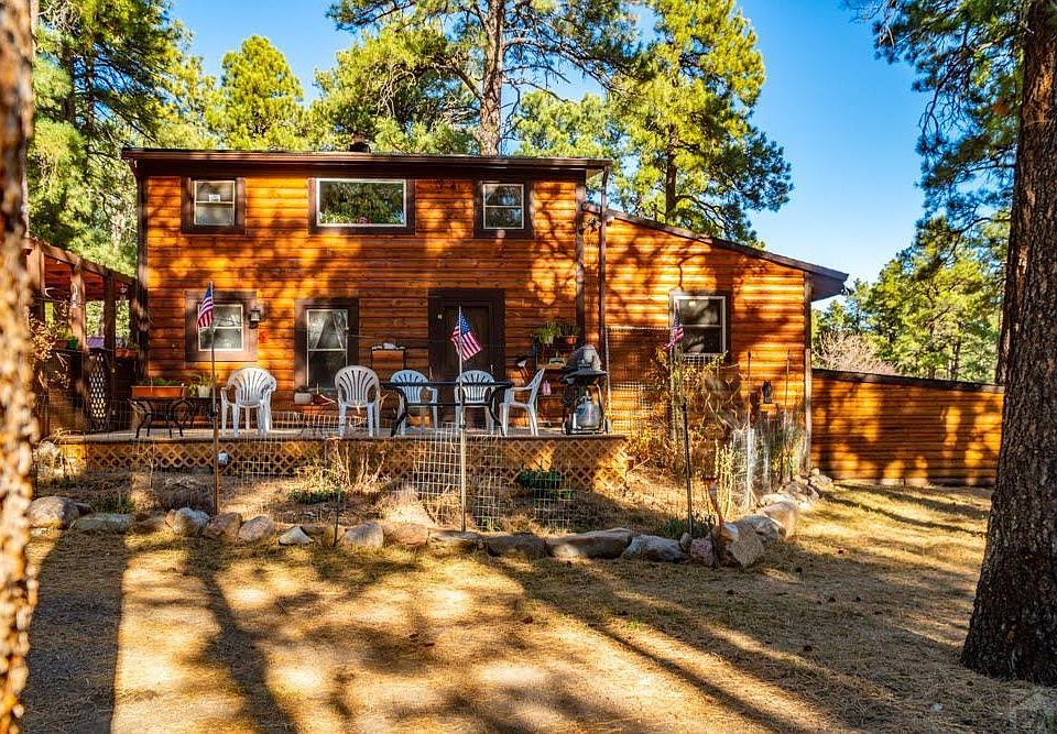 Beautiful setting in the pines. Year around home or mountain get away. 24 x 24 detached garage/workshop, 28 x 10 storage building, garden area with deer fencing plus another small shed for lawn equipment, etc. Attached 1 car carport, large deck on the front of the home. Updated kitchen including appliances. Square footages differ from the Assessor, Buyer to verify. Newer updated electrical, and windows. Hardwood floors on the main level. Fiber optic for telephone, internet, TV by HIGHLINE, formerly Rye Telephone.