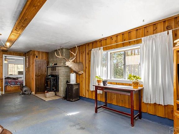 Nestled in the pines, this little home and property has lots of potential. Home features 1,151 sq ft, 2 beds, 1 bath. Newer furnace and hot water heater. Insert pellet stove. Attached one car carport. Metal Roof and an updated electrical panel. Sitting on a wooded 1.29 acre parcel, a private well with a submersible well pump. Includes a storage shed, well house and a small outbuilding. Close to Rye Mountain Park, Town of Rye, Hiking Trails and easy access to Hwy 165.