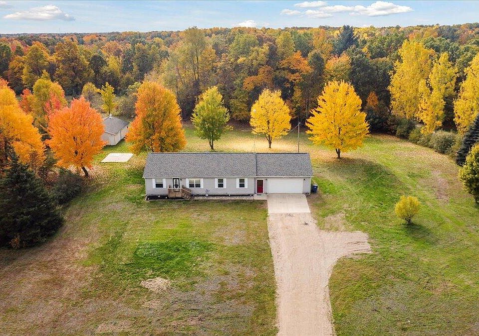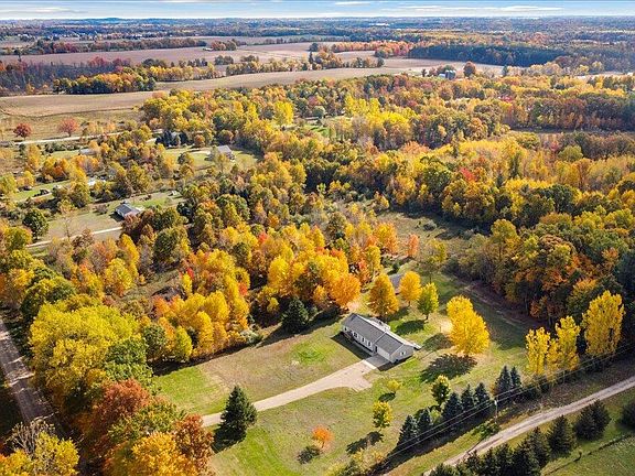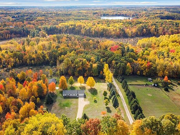 Beautiful private 10-acre wooded lot with a freshly remodeled 3 bed 2 bath Ranch home with attached 2 stall garage, patio off the dining room with an additional detached garage that is finished with two rooms wash sink and lots of outlets.