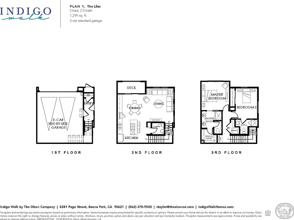 Located in Buena Park, Indigo Walk is a vibrant new townhome community that offers the ideal address whether you're commuting for work or enjoying a staycation in your own neighborhood. It's situated within minutes of top entertainment venues, outdoor shopping malls, and new restaurants so you don't have to go far to enjoy Southern California's most desirable destinations. Built by The Olson Company, Indigo Walk's townhomes feature up to 4 bedrooms, 4 full baths, 2-and 3-car garages, contemporary living spaces, and gourmet kitchens designed for entertaining.