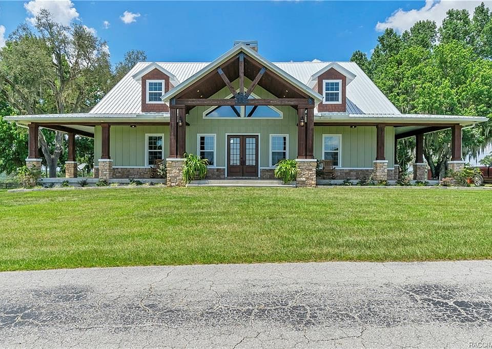 360 degree views of rolling hills & majestic oaks on this 60 acre farm located just minutes outside of Inverness. Ride down the sprawling drive where you arrive at the 2 story farmhouse w/wrap around porch. Imagine yourself on rocking chairs enjoying the magnificent views & watching the many species of birds fly through your property, this truly is a bird lovers paradise.Enter through double doors into the grand living space w/19ft ceilings into the great room w a double sided fireplace. Chefs kitchen features custom cabinets made w/Florida wild cherry wood, commercial gas range,36" farm sink, & center island w/additional 20" prep sink.Master suite features a luxury master bath w/walk in shower,garden tub, dual sinks, granite counters & travertine flooring & tile. Walk in closet has custom wood shelving & access to laundry room. The guest side of the home features 2 bedrooms w/ full bathrooms & walk in closets & 1 additional bedroom & half bathroom.The 2nd story features 2 lofts.
