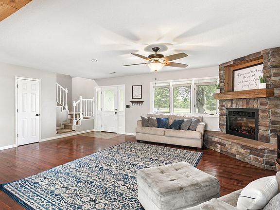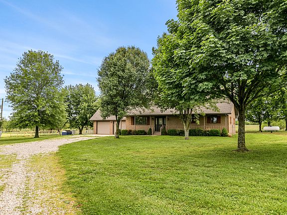 Two story, all brick 5 bedroom home on 8 beautiful acres! Offers living room with stone, fireplace, open floor plan with updated kitchen that has granite counter tops, stainless steel appliances, island with seating and dining area. Main level has three bedrooms, a full bath and updated laundry/utility room. Upstairs has two bedrooms and a full bath. Outdoors you will find a large covered front porch, massive deck out back with a pergola, a 40x70 fenced organic garden, plenty of space for chickens and cows/pigs with partially electric fence, utility pole for generator hook-up plus a 30x40 shop with concrete floor, electricity and wood stove. Other updates include: new HVAC, hybrid heat pump water heater, new sliding glass door and fresh paint! Make an appointment for your private showing today!!