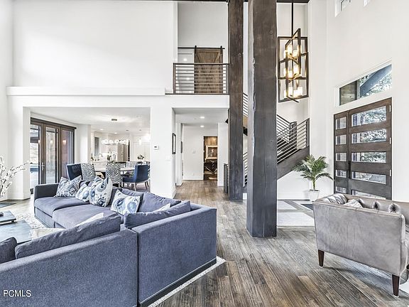 Nestled in a grove of whimsical aspens and mature evergreens is where you'll find this perfect mountain contemporary home. This 6 bedroom, 5 bathroom luxury home is set in a coveted gated community The Trails. Set on over 2 acres, and bordering hundreds of acres of open space! Just minutes to the heart of Park City, and also Salt Lake this home offers an incredible combination of privacy, space, and convenience. Driven by Michael Upwalls world-class architecture and a recent gorgeous remodel, this desirable floorpan offers an open & airy main level custom created for entertaining which blends seamlessly with the outdoors. An entertainers kitchen is complete with Wolf & Sub Zero appliances, two dishwashers and an exquisite island. The kitchen opens to the dining, living, and doors that open to nature and incredible outdoor areas. A secluded primary suite features its own private deck overlooking the backyard. This is one of the most amazing back yards in all of Park City and offers direct access to the popular 24/7 trail for all things outdoors. The lower level guest suite features a second living room and a flexible floorplan which provides options for an office, fitness room, an additional bedroom, or whatever your heart desires! The heated driveway makes it easy for you to get first chair on powder days as the home is only 15 minutes to town and 20 minutes to Salt Lake City. If you've been looking for a home with style, privacy, land, and convenience, this is it!