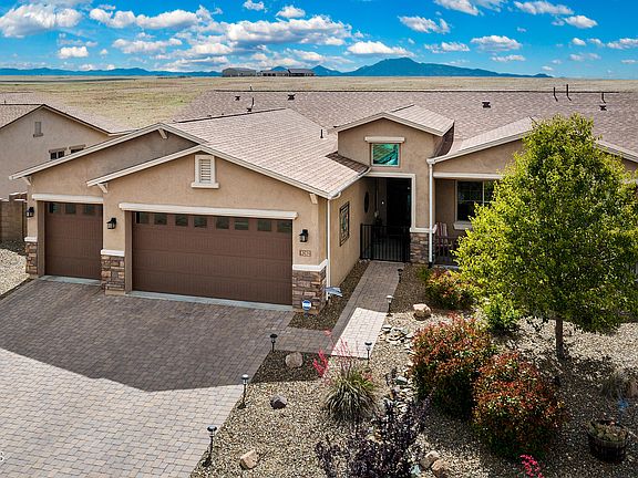 UPGRADES AND VIEWS GALORE! This gorgeous home comes with the most STUNNING VIEWS in Viewpoint and OVER $150k in upgrades! This meticulously maintained home is situated on a premium lot in this tranquil community, has no neighbors behind you and has a BREATHTAKING panoramic view of Granite and Bradshaw Mountains and Glassford Hill. The backyard has a beautifully upgraded patio, perfect for outside dining, entertaining, or even just enjoying those beautiful views. Entering the home, you will find 4 generously sized bedrooms AND an office/den! The kitchen features beautiful SS appliances, gorgeous wood look tile, and granite countertops. Upgrades include a 2 FOOT GARAGE extension, motorized blackout shades, complete home water softener, central home vac, a $5k California Closet system