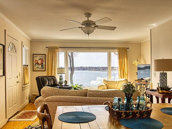 This charming lake front cottage sits on a bluff overlooking all sports Webster Lake in Epworth Forest and offers awesome views morning or night! The 1930's cottage even contains some of the original charm such as glass doorknobs and pine floors in the main room. Enjoy the large maintenance free lakeside deck which includes an automatic awning for sun protection. Updated and move in ready, this home has 2 nice sized bedrooms, 2 full baths, a basement that can be transformed and a detached one car garage with room for additional storage. A galley kitchen with plenty of cabinet/counter space opens to the living and dining area. A large picture window provides a spectacular view of the lake. There is awesome natural light from just about every angle in this home! The property includes 3 terraced level with the original rock walls and a unique sandy beach area. Great opportunity to build lake memories together and watch the Dixie paddle by!