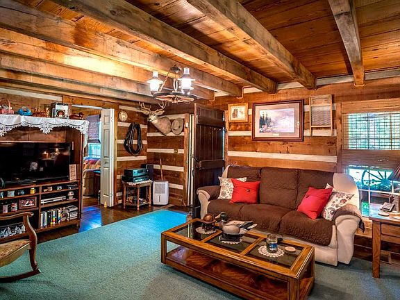 Custom built log home nestled amongst beautiful landscaping on just over two acres. The rustic interior includes a stone wood burning fireplace in the living room as well as hardwood floors and wood beams on the ceiling. The eat in kitchen combines the same rustic appeal but includes modern appliances. Also included is a two car detached garage, outdoor wood furnace, dog kennel, paved driveway, and several storage sheds. *Although this property has the possibility of 3 bedrooms, the septic system is approved by the health department for 2 bedrooms.