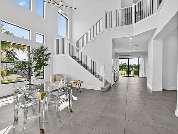 Discover this stunning Polynesia model on a rare oversized corner lot with southern exposure, filling the home with natural light from sunrise to sunset. Enjoy soaring corner windows extending to the second-floor loft, creating an airy, modern ambiance and architectural appeal. This 5-bedroom, 7-bath home features upgraded concrete-look porcelain tile, recessed lighting, and an epoxy-finished garage floor. Relax with serene corner lake views and envision your future pool basking in all-day sun. Located in Boca Raton's premier Lotus Palm community with resort-style amenities and top-rated schools.
