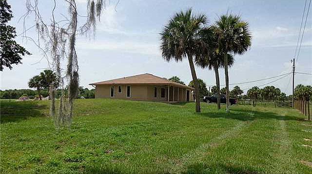 Amazing opportunity to own a home with approximately 20 acres fenced with pond,in Western Martin County. This raised 3/2/1 home has fresh paint, Vaulted ceilings. oversize tile and new wood laminate flooring in bedrooms. Huge front porch to enjoy summer breezes from the East, Kitchen has wood cabinets and room for you to bring your own appliances. Very open plan, light and bright! Partial tar road then dirt. Bring your horses, cattle and more and enjoy the country lifestyle while having access to beaches, golf, shopping and all the Treasure Coast has to offer. Three airports with 2 hour drive lets this be a great getaway property. Indiantown has expanded with new stores opening now. Brand new water well dug 7/2/15.