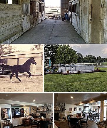 5acre all brick, split lvl. Hardwood living room. Lrg tiled kitchen, fire place, lrg laundry, extra 16x20 area currently used as storage, additional 16/20 space inn lower level used as office, could be additional bedroom / living space/ mother in law space. Many extras.... Tractor w bush hog and zero mower included at small additional cost 1 1/ 2bath, vinyl fenced, 4stall barn w concrete aisle, 20x30 concrete hay barn, 80x160 outdoor lighted arena-2 yr old pool, New composite roof, new hvac system, newer water heater. Some upgrades needed in bathrooms