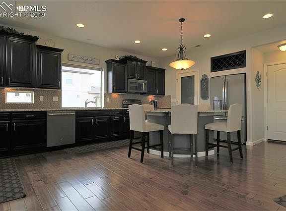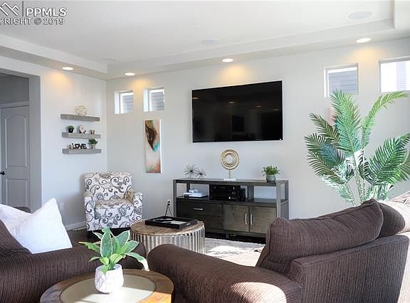 An Impressively finished Home within the community of Banning Lewis Ranch, offering magnificent views of the Peak in comfort and style. An extended entry invites you into the spacious open living room and beautifully detailed kitchen offering rich tone wood flooring, crown molding cabinetry, impressive granite and glass tile back splash. Walk out onto the deck to enjoy the sunrises to the east and glorious sunsets to the west. The upper level boasts of extended loft area living and convenience of laundry access. The Master Bedroom suite is spaciously laid out with a walk in closet and the adjacent bath. The tile and granite touches accenting the double vanities in each bathroom add to the beauty of the crafted tile work showers throughout. Unique features of the home and quality upgrades to the finishes make this an outstanding home. For those seeking additional space, the unfinished basement can be completed for more bedrooms or extended living area; with rough in for a full bathroom. Remarkably well maintained, this home is truly a unique find!