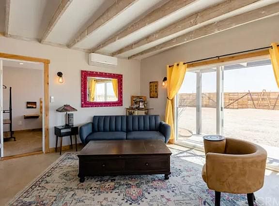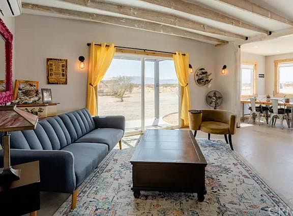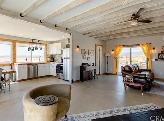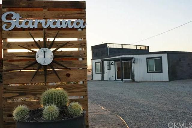 Right out of a Dwell magazine, this 1957 Original Mid-Centry Homestead Cabin on 5 acres with a star gazing deck that will make you swoon. Just 15 Miles to Joshua Tree National Park with 3 Million Visitors per year making this one of the best SoCal rental markets. Upgraded with all the modern conveniences: Low maintenance galvalume siding, Shou sugi ban (Japanese charwood) accents, new stainless steel appliances, mineral wool insulation and new mini-split ACs in bedrooms and living area (it gets nice and cold). The back yard is complete with an outdoor fire place, bocce court, horse-shoe ring, corn-hole and magic hour sunsets. All of this on a 5 acre parcel at the foothills of a national reserve, surrounded by government land and just 3 miles to the iconic Palms Restaurant.