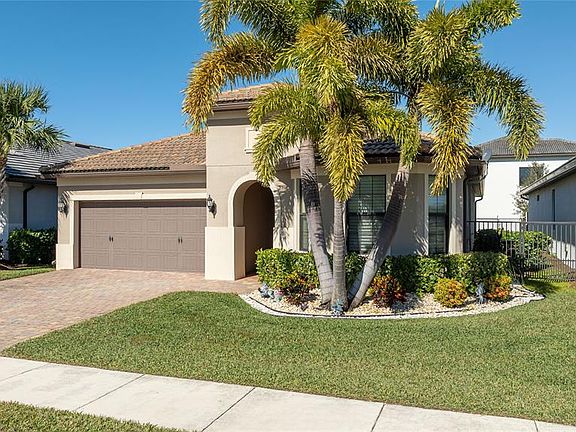 Gorgeous 3 bedroom plus office/playroom, 2.5 bath, 2 car garage lakefront home in the lovely Fields of Gulfstream Polo. This home is bright, open & inviting and in absolute move-in condition! Beautiful kitchen with multiple upgrades incl exotic granite, high-end appliances, upgraded cabinets & designer lighting. Tinted impact windows. Tile floors in all living areas & bedrooms. Spacious open floor plan with volume ceilings, breakfast area & family/dining room. Kitchen has ample countertop space along with a snack bar overlooking the family room. Primary bath has dual granite sinks along with a large custom walk-in shower. Enjoy the serene lake view from the screened patio of the extended lanai. Triple slider doors create an al fresco dining experience. HOA incl all lawn care & irrigation.