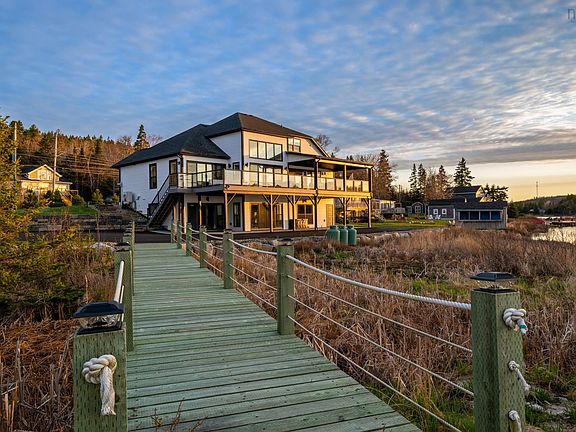 Experience refined coastal living with this 5-year-old executive-style, main-level living 1.5-storey bungalow set on nearly 3.5 acres along the scenic shores of St. Margaret’s Bay. Located just 35 minutes from downtown Halifax, this exceptional property offers a perfect blend of modern luxury, craftsmanship, and breathtaking ocean views. Boasting nearly 3,000 sq. ft. of thoughtfully designed space, the home features 3 bedrooms and 3.5 baths, including a luxurious main-level primary suite with a spacious walk-in closet and spa-inspired ensuite. The heart of the home features soaring 14’ ceilings and four sets of 12’ patio doors, allowing natural light to pour in and frame stunning southern-facing water views. The chef’s kitchen is a showstopper, complete with a large quartz waterfall island, high-end appliances including a 36” propane stove, a 5-foot fridge/freezer combo, and custom cabinetry. Entertain effortlessly in the open-concept living and dining areas, designed to maximize natural light, flow, and connection to the eye-catching outdoors. Step outside to a 55’ rear composite deck with glass rails, a covered section for shade, and stairs leading to carefully landscaped grounds. Historic hand-chiseled ironstone from Halifax’s Armouries building and flagstone accents add a one-of-a-kind touch. A wharf-style walkway guides you from the yard to the beach, creating a unique coastal charm and easy shoreline access. Enjoy 1,120 feet of beach frontage and approximately 740 feet of pond frontage. Zoned MU-1, this property offers flexibility for a variety of business and commercial uses. Additional features include, but are not limited to: 2 garages with space for 6 cars, Paved driveways front and back. Propane powered heat pump and appliances, 50-year fibreglass roof shingles, 12’ x 12’ beachside shed and a hot-tub. This remarkable home is a rare opportunity to enjoy upscale coastal living, within close proximity to the city.