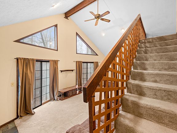 Nestled among the serene surroundings of a wooded landscape , this off-water lake home boasts a timeless charm, from the deck you will be greeted by the tranquil embrace of nature with the woods providing a beautiful backdrop. 2 bedrooms, a loft area and a nice large great room to enjoy the fireplace.