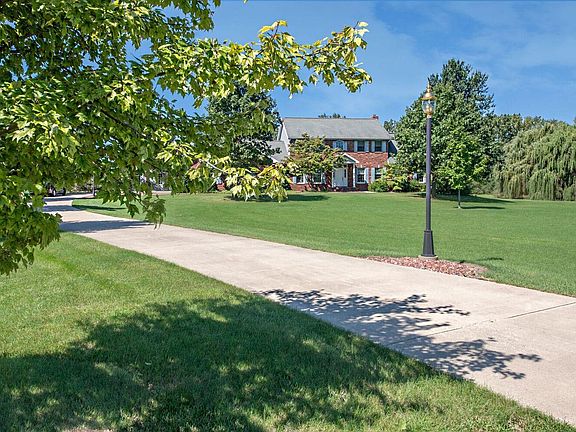 This gracious five-acre estate setting will delight you! Stylish, quality brick home built right & has had wonderful updates! Long, winding driveway to a brick walkway, rich entry, & open railed stairway in 30 ft living room w/ fireplace & French doors to inviting formal dining rm adjoining kitchen w/ informal eating space & rich custom cabinets, walk-in pantry, 60+ sq ft stone counters & many extras! 27 ft vaulted family rm w/ brick fireplace. 1st floor laundry. Master suite w/ dressing rm & 12 ft walk-in closet & bath! Basement w/ daylight windows & over 1,000 sq. of dry-walled area & 2nd stairs up to 3+ car garage. Huge patio around very private pool overlooking large pond. 22x20 outbuilding w/ loft, garage bay, kennel, storage & more! New Geo-thermo Water-furnace 2019. MUST SEE INSIDE!