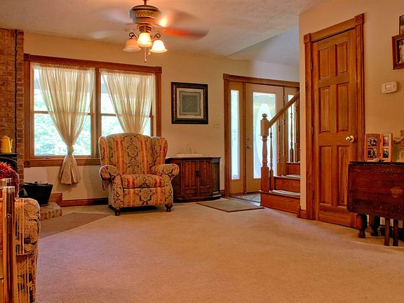 This home will check all the boxes on so many wish lists! Nearly 5 acres in beautiful Brown County. 2 car heated and cooled attached garage. Barn with electricity. Covered front porch w/ beautiful views. Gorgeous hardwood floors with custom inlays. Large bedrooms. Main level bonus room, family room (mother-in-law suite), office and deluxe laundry (newer high efficiency washer and dryer included). Updated kitchen with stainless appliances, new sink, fixtures, pull-out kitchen cabinet baskets, counters, breakfast bar and travertine back-splash. Updated main level bath. Poured concrete basement. Fenced back yard. All solid wood doors throughout. Lopi wood-burning stove and brick surround. Many new fixtures and Hunter ceiling fans throughout.