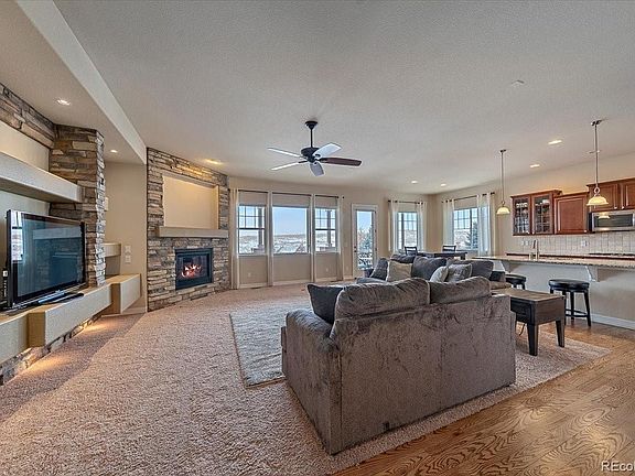 **LOCATION, RANCH STYLE, OPEN CONCEPT, ROOM TO GROW, CHERRY CREEK SCHOOL DISTRICT!** A beautifully maintained, "like new" ranch-style home in the beloved Blackstone Country Club neighborhood! A lovely open concept with front range views off of the back covered deck and steps away to a neighborhood park, this ranch style home boasts a fabulous floor plan, 3 car garage, with room to grow or opportunities to customize in the full garden level basement. In addition to the bright and cheerful open concept plan, find a main floor primary suite with five piece bathroom, a main floor guest bedroom, main floor office, spacious family room with a gorgeous kitchen with rich cabinets, granite counters, with oversized island, spacious eat-in/dining space and coffee bar. Enjoy the quintessential Colorado indoor/outdoor living opportunities with the back covered deck with a few steps descending to a lovely landscaped rear yard. Additional features: hardwood flooring, main floor laundry and mudroom, high ceilings, cozy interior features, gas fireplace and ample sunlight filling the primary suite, family room and kitchen! A rare ranch option with close proximity to E-470, shopping, restaurants, entertainment and more, live in place and customize this beautiful home and enjoy the amenities that Blackstone Country Club has to offer!