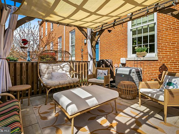 Welcome to 829 1/2 S. Sharp Street , a totally updated and turnkey town home created from an historic 1860’s elementary school, Public School 123. Looking for a home with loads of character but very little to update? This one’s for you. Featuring 2 en suite bedroom suites and 2.5 baths, the home features original maple hardwood floors, a wood burning fireplace, exposed brick and soaring 12ft ceilings. A gated, secure entrance with an assigned parking spot (#4) leads to a well manicured, private outdoor patio space with beautiful pergola – plenty of room for outdoor lounging and entertaining. Inside, you’ll love that the main living level allows for beautiful flow between the living, dining and kitchen areas with large replaced windows and so much natural light through sunny Southern exposures. The pièce de résistance is the gourmet kitchen which was masterfully designed to take advantage of every space and features “to the ceiling” extended cabinetry, granite countertops, a professional grade Wolf dual fuel convection range, a Sub zero refrigerator with glass door, and a built-in Wolf steamer convection oven. Wow! On the second floor you’ll find 2 nicely proportioned bedrooms with ample closets, original hardwood floors, and 2 recently updated full baths. For an added surprise, there is a large easy-to-finish basement with a laundry area, play/workroom space and so much storage. This home has been meticulously maintained and offers updated Carrier HVAC system (2019), water heater (2019) and replaced windows (2009). A pool membership to the Otterbein Swim Club directly across the street conveys with the sale, avoiding the 4+ year waitlist. Otterbein is full of many hidden landscaped parks, private security, and is away from the bustle of Federal Hill and the Inner Harbor, but close enough to walk to its many attractions. Walking distance to M&T Bank Stadium, Camden Yards, the MARC train, the Light Rail and close to all major commuter routes including I-95 and 295.