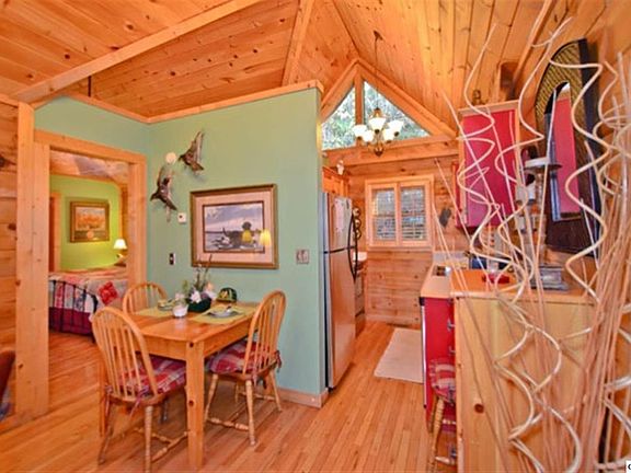 Charming 1Bdr/1Ba one level cabin in the gated community of Hidden Mtn East. Fully equipped kitchen with stainless steel appliances and gorgeous granite counter tops. Living room features vaulted ceilings, gas fireplace and built in bookcase/entertainment center. This beautifully decorated cabin has hardwood flooring and plantation shutters through out. Front porch has a gas grill and porch swing and a screened in back porch with hot tub. Community offers well maintained roads, nicely decorated grounds, outdoor swimming pool and club house.