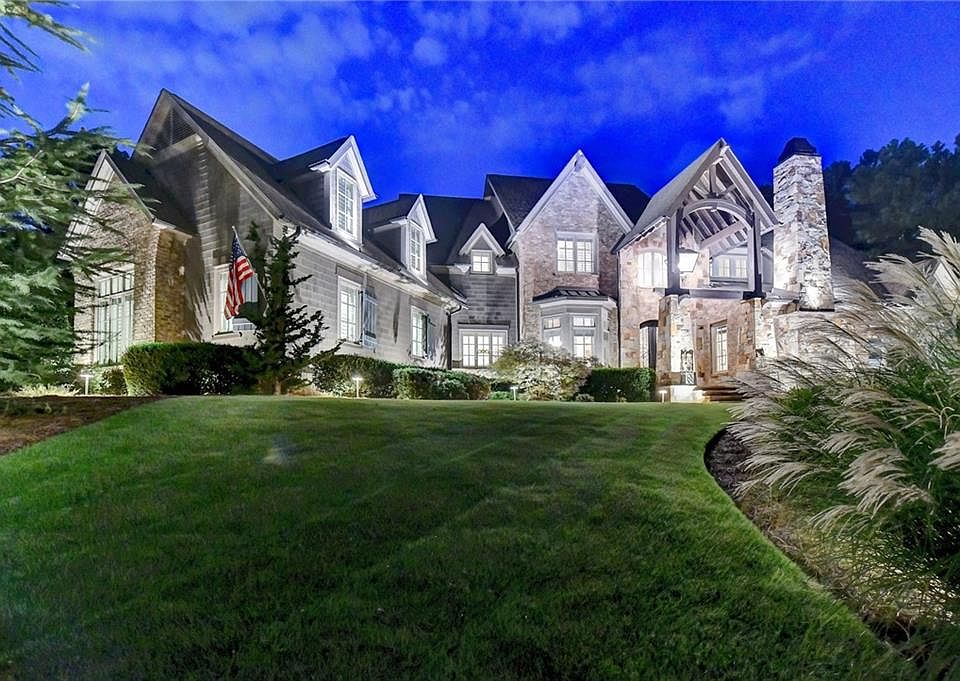 Welcome to this exceptional River Club estate, perfectly positioned between the 5th AND 6TH HOLES of the prestigious Greg Norman GOLF COURSE. This custom-built masterpiece features 5 bedrooms, 6 full and 3 half baths, a MASTER-ON-MAIN, WALK-OUT HEATED SALTWATER POOL, and a finished TERRACE LEVEL —all crafted with meticulous attention to quality and design. Step through the grand stone porch into a foyer flanked by a sophisticated OFFICE with MARBLE FIREPLACE and a DINING ROOM with bay windows and beamed ceilings. The soaring FAMILY ROOM boasts RECLAIMED WOOD BEAMS, a floor-to-ceiling stone fireplace, and views of the POOL and outdoor living spaces. The gourmet kitchen features brick accents, high-end cabinetry, Stainless steel WOLF /SUB-ZERO APPLIANCES, granite island, walk-in pantry, and a wet bar. A sunny BREAKFAST ROOM opens to the COVERED STONE PORCH with FIREPLACE, built-in GRILL, fridge, and full pool bath, ideal for entertaining. The luxurious MAIN FLOOR owner’s suite includes a BEAMED tray ceiling, FIREPLACE, bay windows, and spa-like bath with jetted tub, double vanities, walk-through shower, and custom walk-in closet. Additional main-level amenities include a large laundry, mudroom, powder room, and built-in workstation. Upstairs offers a cozy loft, three spacious en-suite bedrooms, a SECOND LAUNDRY, and an unfinished BONUS ROOM. The daylight TERRACE LEVEL is an entertainer’s dream with HANDCRAFTED woodwork, brick and wood-paneled walls, SLATE floors, a BAR, GAME room, GYM, GUEST suite, and powder room. Outside, the rare WALK-OUT Pebble-Tec SALTWATER pool features a waterfall, HOT TUB, FIREPLACE, covered patio, and lush landscaping—just steps from the GOLF COURSE. Top-tier features include a DEEP WATER WELL, Generac WHOLE HOME GENERATOR, WATER FILTRATION & HUMIDIFIER systems, app-controlled LUTRON LIGHTING, extensive outdoor lighting, 4 CAR GARAGE & large motor court. Built from the ground up by the ORIGINAL OWNERS with no expense spared, this home is the pinnacle of luxury in Atlanta’s premier gated golf/swim/tennis community—The River Club.