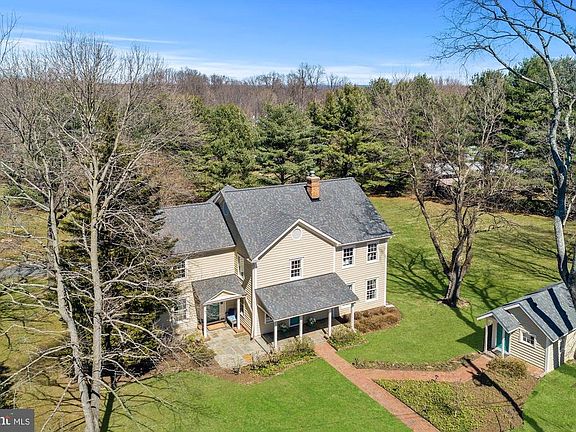 OPEN 3/31 2-4pm ** Renovated 3 bedroom, 3 bath farm house with separate cottage with 1 bedroom and 1 bath is located in an idyllic setting off a private road on a magnificent, private 2 acre open lot! Charms of yesteryear and the original log cabin dating back to the 19th century harmoniously intertwine with the spacious floor plan of the latter-day farm house renovation. Modern convenience and Great Falls~ natural charms invite a feeling of a more tranquil, unhurried lifestyle and an escape from everyday pressures. Inviting front porch with side covered porch to relaxing deck * Living room with brick fireplace and wide plank oak floors * Eat-in kitchen with new flooring, inset white cabinets, Silestone counters, and breakfast bar * Family room with exposed hand-hewn timbers and stone fireplace with Jotul cast-iron stove * Formal dining room with exposed timbers & inset windows * Master suite with exposed brick and timber walls, walk-in closet and renovated bath * Updated second bath * 4th floor walk up attic could be additional bedroom * Rear load 2 car garage * Detached cottage with full bath - a great guest suite, office, or in-law suite * Rustic barn * Beautiful 2 acre setting with mature shade trees and room to play * Great location with country feel yet so close to Tysons, Reston, Airports, and Great Falls Village!