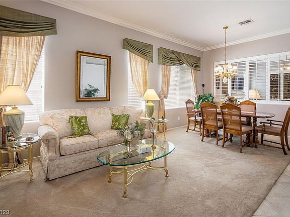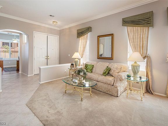 Beautifully maintained and newly painted original owner home in Summerlin. The home offers granite counter tops with stainless appliances and even a double oven. All Appliances included, along with the washer and dryer and water treatment system. The A/C, water heater, water treatment and appliances were replaced recently. There are 10 foot ceilings throughout with pot shelves and some rooms with crown molding. Window coverings consist of wood shutters, blinds and custom draperies.