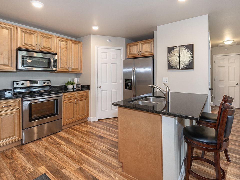 Welcome Home to this stylish, well cared for condo in NW Bismarck. This 2 bedroom, 2 bathroom condo features an upgraded kitchen with stainless steel appliances, granite counter tops, and large corner pantry. There is a nice space for dining plus additional seating available at the kitchen peninsula for eating. Enjoy the large living area with lots of daylight and walkout to south facing deck. The primary bedroom is a nice size with a primary 3/4 bath ensuite and walk-in closet. On the other side of the unit, you will find the 2nd bedroom. There is an additional full bathroom and laundry area. Washer and dryer included are only 1 year old. On the main floor of the building is the attached, heated 1 stall garage. This building has an elevator for easy accessibility to the upper level unit. Come check out everything this unit has to offer!