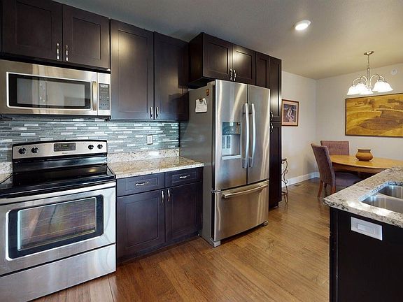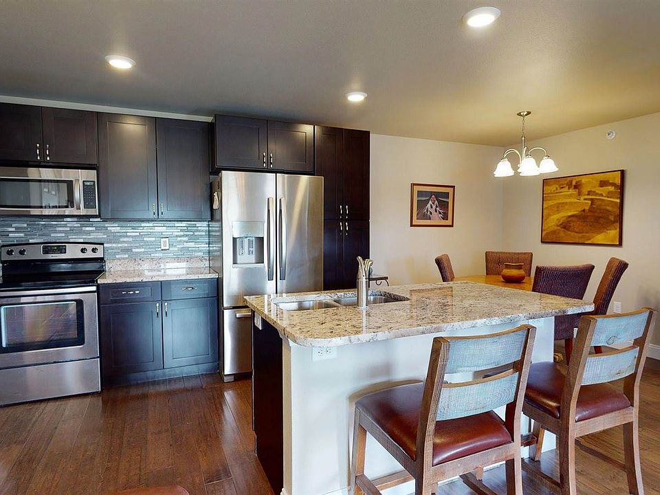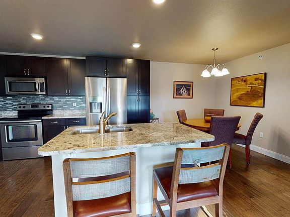 Welcome to your new updated home! You will fall in love with the beautiful design, sunny rooms, and spacious living. The kitchen has newly added backsplash, stainless steel appliances, granite countertops, vinyl flooring, eat-in island with double sink, and cherry wood cabinets with modern hardware. Adjacent is the dining area and living room. Awesome open concept layout, and gorgeous walk-out deck. This unit has the largest deck in the complex, great for entertaining. Down the hall you will find Bathroom #1 with laundry in unit, Bedroom #1 with double closets, and the oversized Master Suite with a 3/4 bath and walk in closet. The garage is attached and heated, take the stairs or the elevator to this 2nd floor condo. No lawn care. No snow removal. Enjoy easy living in this peaceful location of North Bismarck. Schedule a private showing today, you must-see contemporary condo in person!