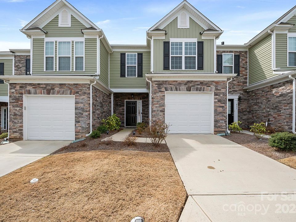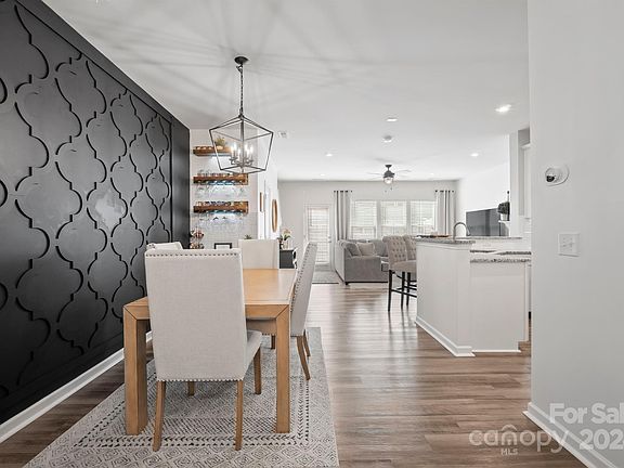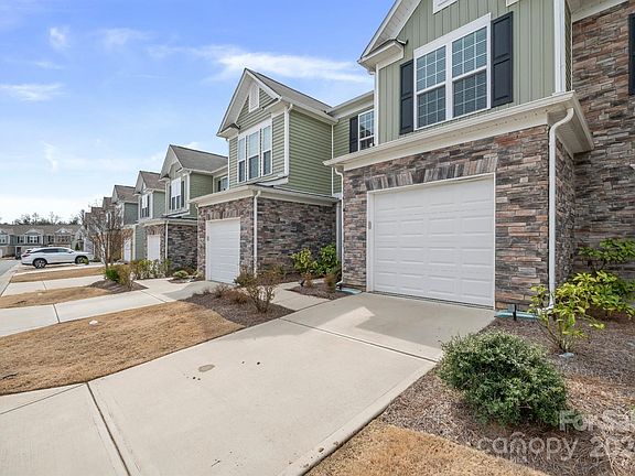 Stunning and well-appointed townhome in gated community in Fort Mill. The designer touches and modern features make it an attractive and comfortable living space. The kitchen stands out with granite countertops, stainless steel appliances, a tiled backsplash, and beautiful white cabinets with under cabinet lighting. The built-in bar/coffee station and accent wall in the dining area add unique and stylish elements. The spacious living room with a fireplace creates a cozy and inviting atmosphere, and it opens to a back patio for outdoor enjoyment. Luxurious primary bedroom w/en-suite bathroom, tiled shower, double sinks, and a walk-in custom closet. 2 additional bedrooms, bathroom, and a laundry room complete upper level. The additional storage in the garage is a practical feature for keeping the home organized. The community pool and clubhouse, along with walking trails and a community pond, offer recreational options for residents.