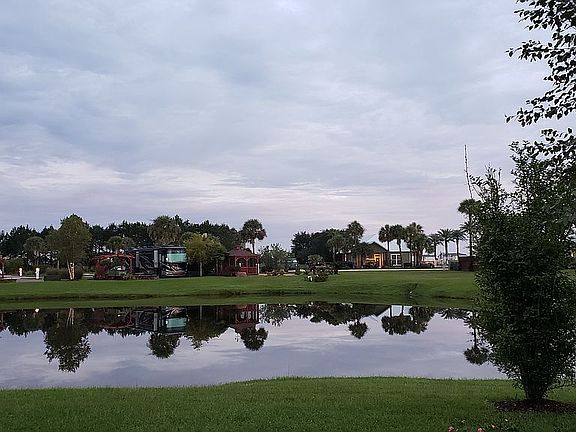 Luxury Class A Exclusive Motor Coach Resort rated #1 in the South and in the Top 5 RV Resorts in the United States (Class A motorcoaches 15 years or newer & 32' or greater in length). This North East facing lot offers a stunning lake & fountain view! The large, 10' x 14' screened gazebo makes lakeside dining perfect with a large dining table with seating for four. Enjoy the warm days on the extended patio overlooking the lake. This site is made even more private and beautiful by the stacked block retaining wall and custom privacy landscaping. This lot also offers quick access to a neighboring bath house, equipped with private shower/restrooms and laundry facilities. Resort amenities include a 6,000 sq ft clubhouse, zero entry infinity edge pool, hot tub, well-appointed fitness center, wet/dry sauna, movie theater room, stocked lake, dog parks & dog wash, and daily activities for guests. Low COA fees and property tax!