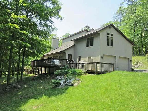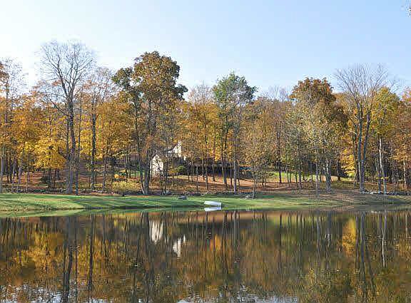 Move into this contemporary home overlooking your own spring fed stocked pond! Quiet enjoyment is what one seeks in this woodland setting. This spacious home has 2901 sq ft with vaulted ceilings, central A/C, fireplace, 2 master suites and lots of light. Also a large deck and 4 car garage are attached. In addition there is a post and beam barn all on 17.95 acres. Owners are willing to rent to own. Ask listing agent for details.