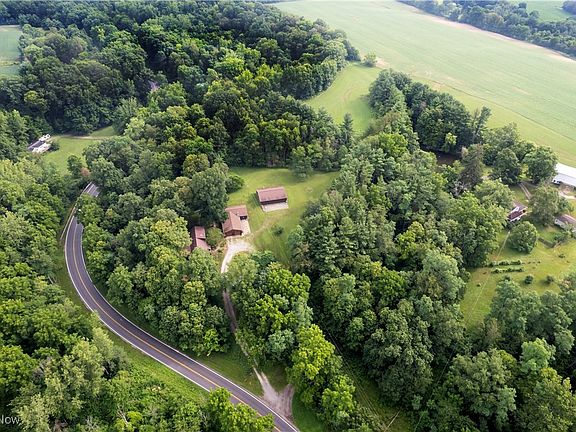 Buyer will entertain all backup offers!  A stunning cedar retreat nestled in a wooded oasis, this custom-built dream home is tucked away in the rolling hills of Ashland County. As you enter, you'll find an open and spacious great room with soaring ceilings and a towering brick fireplace surrounded by high-end sliding glass doors that offer breathtaking hilltop views. Relax on the three-season porch among the tree tops, or enjoy your morning coffee in the hot tub whiles listening to the sound of birdsong. The spacious, updated kitchen is a chef's dream with gleaming granite countertops and a breakfast nook with an oversized window overlooking the back yard and woods beyond. The spacious primary suite loft has a huge walk-in closet, charming casement windows, and an updated en-suite bathroom complete with skylight. The exterior is just as impressive as the inside! Greet your guests on a winding walkway through the abundant English garden to the rustic stone steps and covered front porch. The deep brown new metal roof creates a feeling of a mountain lodge while the wrap around deck offers stunning views of the rolling countryside and winding road below. The huge heated garage is a woodworker's dream, with additional outbuildings for your every project and storage need. Step through the finished basement with cozy stone fireplace to discover a lower patio and fire pit for s'mores and cocoa on Autumn evenings. Quiet an private country living awaits just minutes from charming downtown Main Street packed with restaurants, boutiques, and events. Don't miss this one-of-a-kind, once-in-a-lifetime dream home on Ashland County!