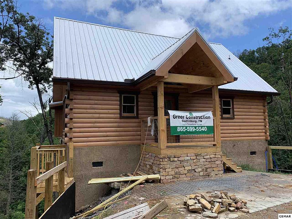 UNDER CONSTRUCTION, Custom built log cabin with beautiful Smoky Mountain views! The open beamed interior is finished with Tongue & Groove, Eastern Cedar on the Mantle, Tree Column, & Stair Treads. Stone electric fireplace in the open living area. The kitchen will have Hickory cabinets, granite countertops and stainless steel appliances. Master suite on the main level with gorgeous tile shower and floor. Open loft with plenty of room for a futon, games, and a pool table. Additional room with bathroom and access to attic storage. Access to Chalet Village pool and amenities.