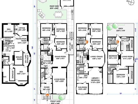 Midwood : Detached 3 family. Building is 23 x 52 and lot is 32 x 100. First and second floor have spacious 3 bedrooms ,formal dining rooms and 1 1/2 baths. Pre-war features include interior stairways to apartments,parquet floors, and high ceilings. The 3rd floor has 2 bedrooms and 1 bath. The first floor has a deck to the rear yard. Finished basement with side entrance. New windows. Gas heat with separate hot water tank. 2 blocks to Avenue J where there is a variety of shops, restaurants, gourmet markets and cafes. One block to the Q train. 1st floor will be delivered vacant .Possible full possession.