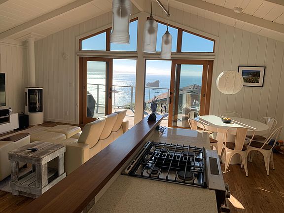 AVAILABLE October 18TH 2021 WITH FLEXIBLE LEASE TERMS ** NOTE: Not available for showing until October 16th. Available to show only on October 16th and morning of October 17th. Please do not disturb current tenants. Thank you. ** 2 bedroom / 2 bath on Edwards St in Trinidad with Stunning Views Flexible Lease Options: This home is FULLY FURNISHED with high quality furniture. But there would be space for some personal items as well. Jaw dropping views from this tastefully furnished and updated two story home located in the beautiful City of Trinidad California. Stunning views of Trinidad Harbor and Trinidad Head! Walk to everything! Parks/trails, beaches and downtown Trinidad shops and restaurants just minutes away from this centrally located home. Relax on the south facing deck that hovers above the sparkling bay. Relax on the outdoor sunbrella sofa. Prepare your meal on the outdoor grill and sip wine on the outdoor dining set while enjoying the views. Pick lemons from the garden from multiple large and mature lemon trees! The garden has been designed to attract bees and birds. There is a bedroom with a king bed upstairs, and a bedroom downstairs with a king bed. The home sleeps 4 comfortably and is best suited for adults or parents with older children that can sleep on a separate level. The open floorplan upstairs has a well equipped modern kitchen for cooking meals, large flat screen 65" TV with high end sound system, Wifi, modern gas stove and Ekornes leather furniture. Views from the kitchen and living room are mesmerizing. The house is equipped with an Eero high speed network system and is conducive for those who need to be online or work from home. The downstairs floorplan contains a small home gym and bonus seating area that leads out to a 2nd deck and garden. There is parking space for two cars in the driveway. There is a washer and dryer in the garage. Parking space inside the garage is limited to medium to small cars. Bi-Weekly Yard Maintenance by a Licensed, Insured local Landscape Professional. No smoking anywhere on the property please. Pets not guaranteed but will be considered on a case by case basis. Will consider shorter term leases but may be at a slightly higher rent. Sorry, no smoking allowed anywhere on property. Pets not guaranteed but will be considered on a case by case basis.