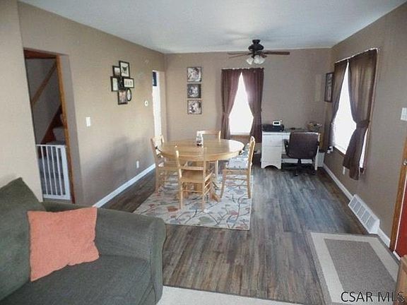 Charming 1.5 vinyl sided home in Greater Johnstown School District. Main floor has carpeted living room, dining room has vinyl plank flooring. Kitchen has appliances included. Full bath w/ tub/shower,linen closet & vinyl plank flooring. Nice size bedroom. Upper floor features 2 bedrooms w/ closet & newer carpeting. Updated 1/2 bath. Full unfinished basement w/ laundry tub & hook-ups Detached 1 car garage. Covered porch. Fenced yard. Ask about a one year home warranty. Call today to schedule a tour!