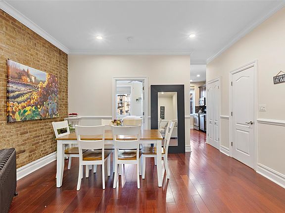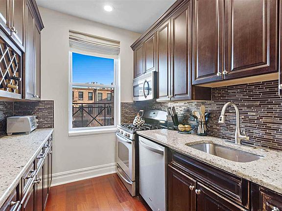 Classicly laid out, yet modernized, this meticulous, sun-filled 1019 square foot 2 bedroom/2 full bathroom home is located between the 8th and 9th block on the coveted Garden Street. The elegant living and dining area featuring exposed brick, gorgeous crown moulding, beautiful cast iron radiator, custom finished carpentry and Brazilian cherry hardwood floors, provides easy access to a kitchen equipped with granite countertops, maple cabinetry and a full suite of stainless steel appliances. Master bedroom includes renovated ensuite bath. Both bedrooms are equipped with custom blackout shades. Enjoy the convenience of in-unit, full size stackable, washer/dryer. The entire building was recently repointed with new hot water services. Just steps from bus to NYC, PATH, Ferry, restaurants, the best shopping, daycare facilities, schools, open green spaces, coffee shops, tennis and basketball courts and more. Rental parking available one block away. Monthly maintenance includes hot water, gas, heat, water, sewer and trash.