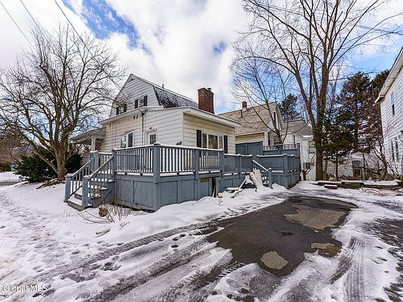 Perfect starter home or rental home located in Schenectady .This home features 3 bedrooms plus a bonus first floor den .The first floor has hardwood floors and a wood burning fireplace, exposed beams and a greenhouse window in the kitchen. Enjoy the large front porch, wrap around deck and walkout basement. Set in a convenient location to downtown Schenectady and Union College, there is off street parking for 3 cars. This home has a newly converted half bathroom into a full bath on the first floor. The bedrooms as well as the den have new flooring . Furnace has just been serviced and some parts replaced. New baseboard heating units installed in upstairs bedrooms. *AS IS CONDITION*.