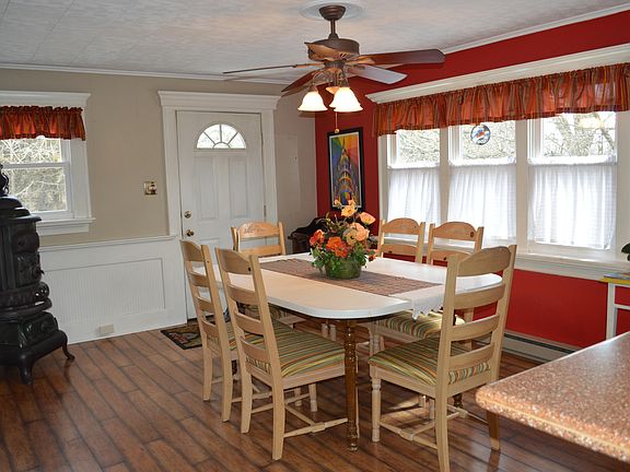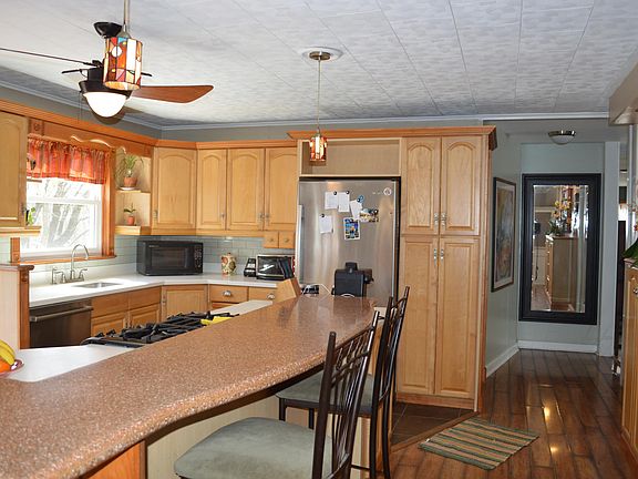 Home so convenient to stores,schools, etc. Enjoy living on 1 floor. Shows love & pride of owners. Remodeled Kitchen with center island, maple cabinets, custom ceramic tile back splash. Open to roomy dining area. Beautiful hardwood or laminate floors thru out. Spacious Living Rm w/slider that opens to lovely patio overlooking the valley. 4 bedrms, 2 & 1/2 baths,. 80 X 20 BUILDING w/potential for many uses. This building Features 4 + Car Heated Garage,wired for 3 phase machinery. Need storage?! There is a separate room for that or complete for a entertainment room. If you are looking to work from home and need storage this could be the home for your family. There is plenty of room outside for kids or dogs to run & play. Come enjoy this beautiful setting with convenient location.