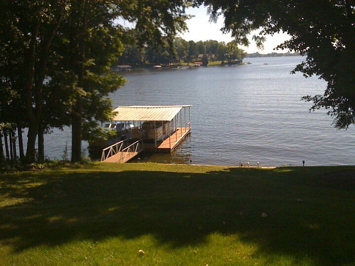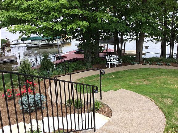 Three level home. Main level has entry, 1/2 bath, wet bar, living room, dinette, kitchen & dining room, all with easy to clean tile floors. Upper level has laundry room, two master suites, 3 bedrooms, & a total of 3 full baths. The 5th bedroom is fairly small & makes a wonderful guest room or a whatever you need it to be room. The main master suite overlooks the lake with a balcony, fireplace & hardwood floors. The attached large walk-in closet can be completed as a super large closet, or is wired to be an office in the back half. The second master suite was added in 2010, is carpeted, & has a separate HVAC system & thermostat. The basement/lower level contains workroom, furnace/storage room, full bath, closet, & great room which can be an in-law suite or a media/game room. Currently has a chairlift which can be included. Currently has a refrigerator which can be included. Dock with boat lift & 2007 Sylvan (boat would make a first great boat is included). Kitchen was remodeled late 2019. All appliances less than 5 years old. Living room wall paneling is solid oak with built-in bookcases on either side of stone fireplace. Living room, dinette, & kitchen all overlook the lake. HOA includes clubhouse with pool, beach, tennis courts, basketball court, volleyball court, playground & year-round activities. Elementary school in neighborhood. 10 minutes from Harbour Trees Golf Course. Two car attached garage with an asphalt driveway that can park up to 5-6 cars. Tall fence on one side & short decorative fence on other (odd, but the one neighbor did not want To look at a tall fence).
