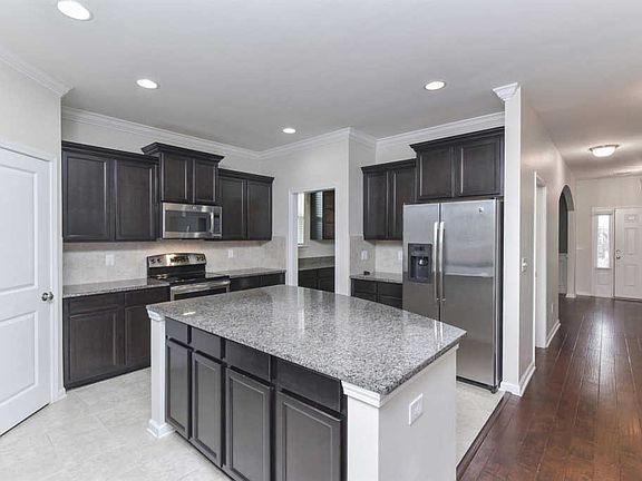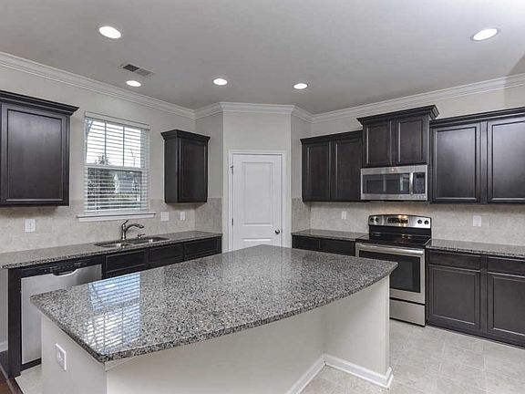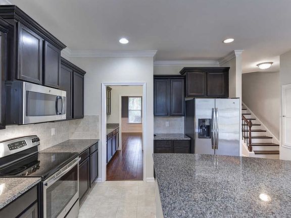 • RoomKitchenFeatures: Granite Counters, Kitchen Island, Pantry, Recessed Lighting, Eat-in Kitchen, Cabinets-Stained, Backsplash-Tiled